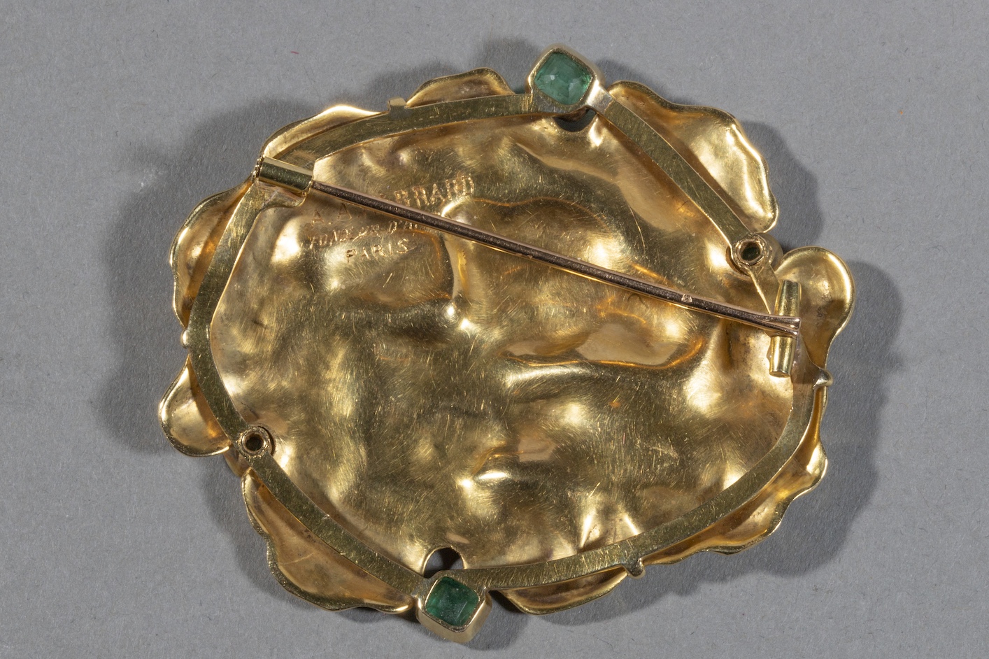18k gold (750/1000) and emerald brooch, signed “J. Desbois”