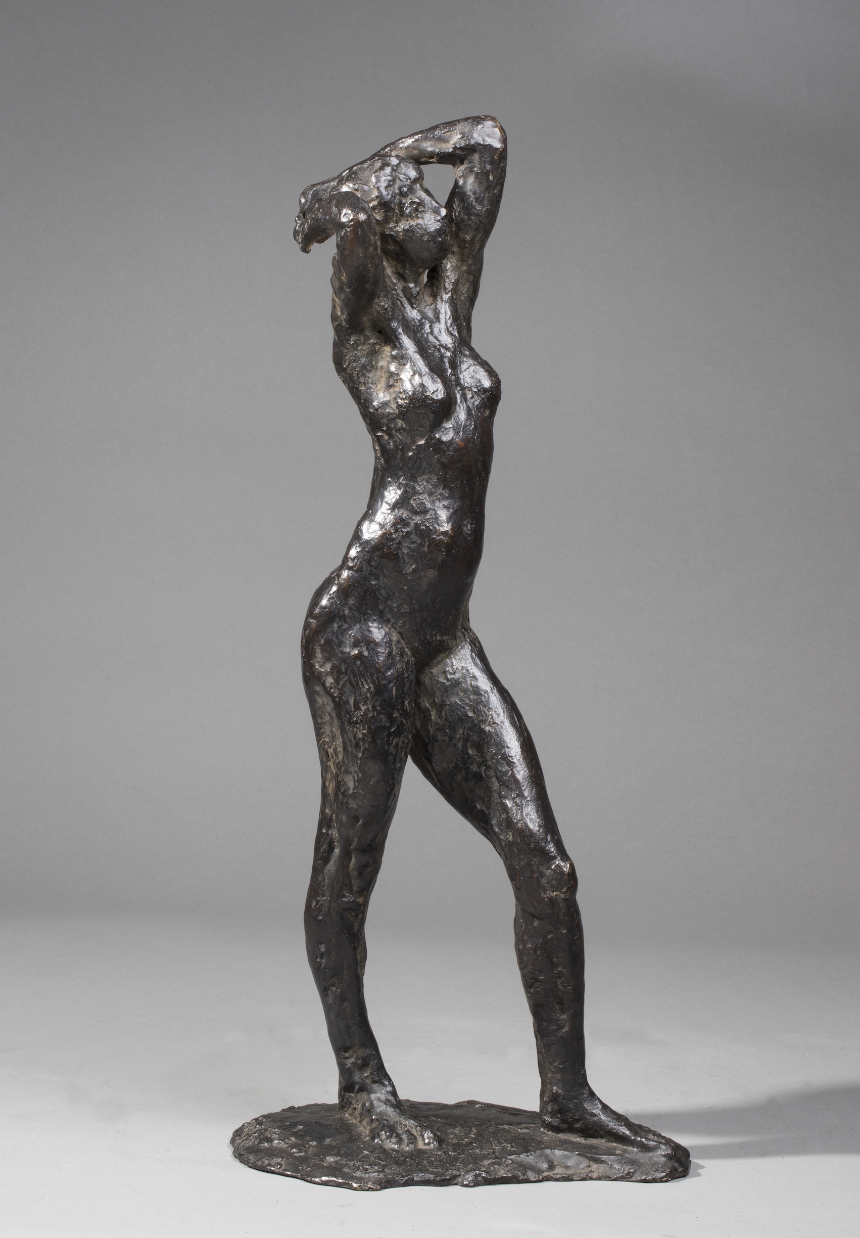 Bronze with nuanced black patina, signed « HOGOMMAT » Sand cast by Émile Godard, bears the founder’s stamp « E. GODARD / CIRE PERDUE » and numbered « 1/8 » H. 18″ x W. 6,2″ x D. 8″. Circa 1968-1971