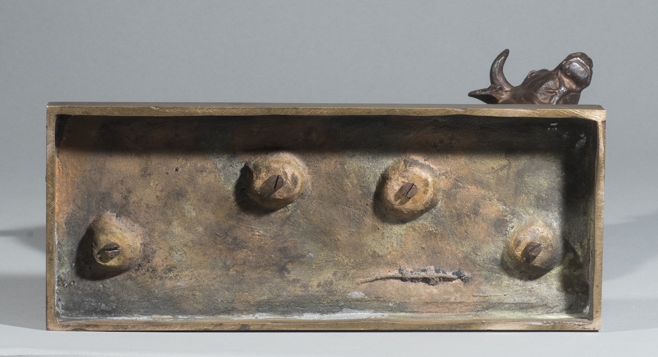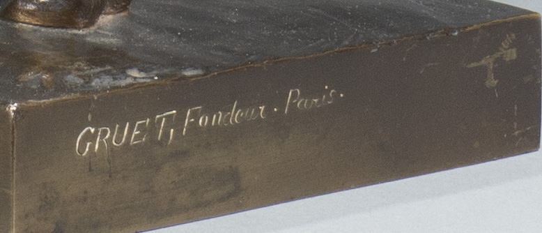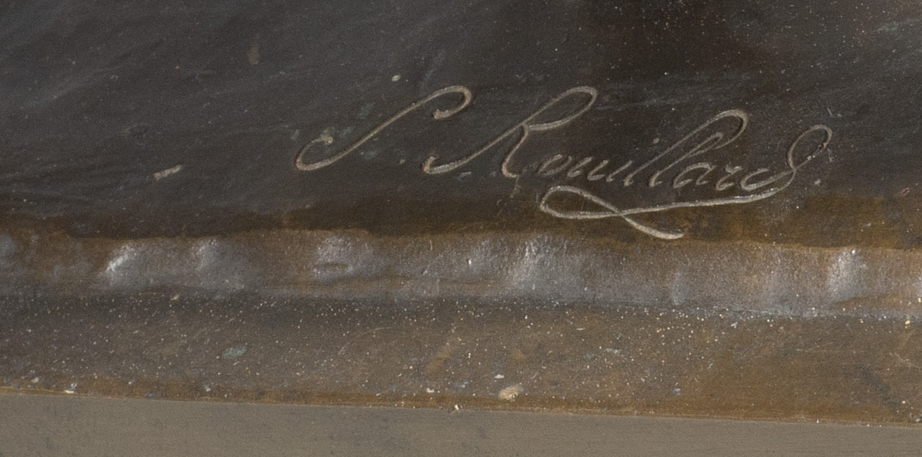 Bronze with nuanced brown patina, signed « S Rouillard» Cast by Gruet, bears the stamp « Gruet, Fondeur. Paris. ». H. 9″ x W. 12,5″ x D. 4,7″. Circa 1870