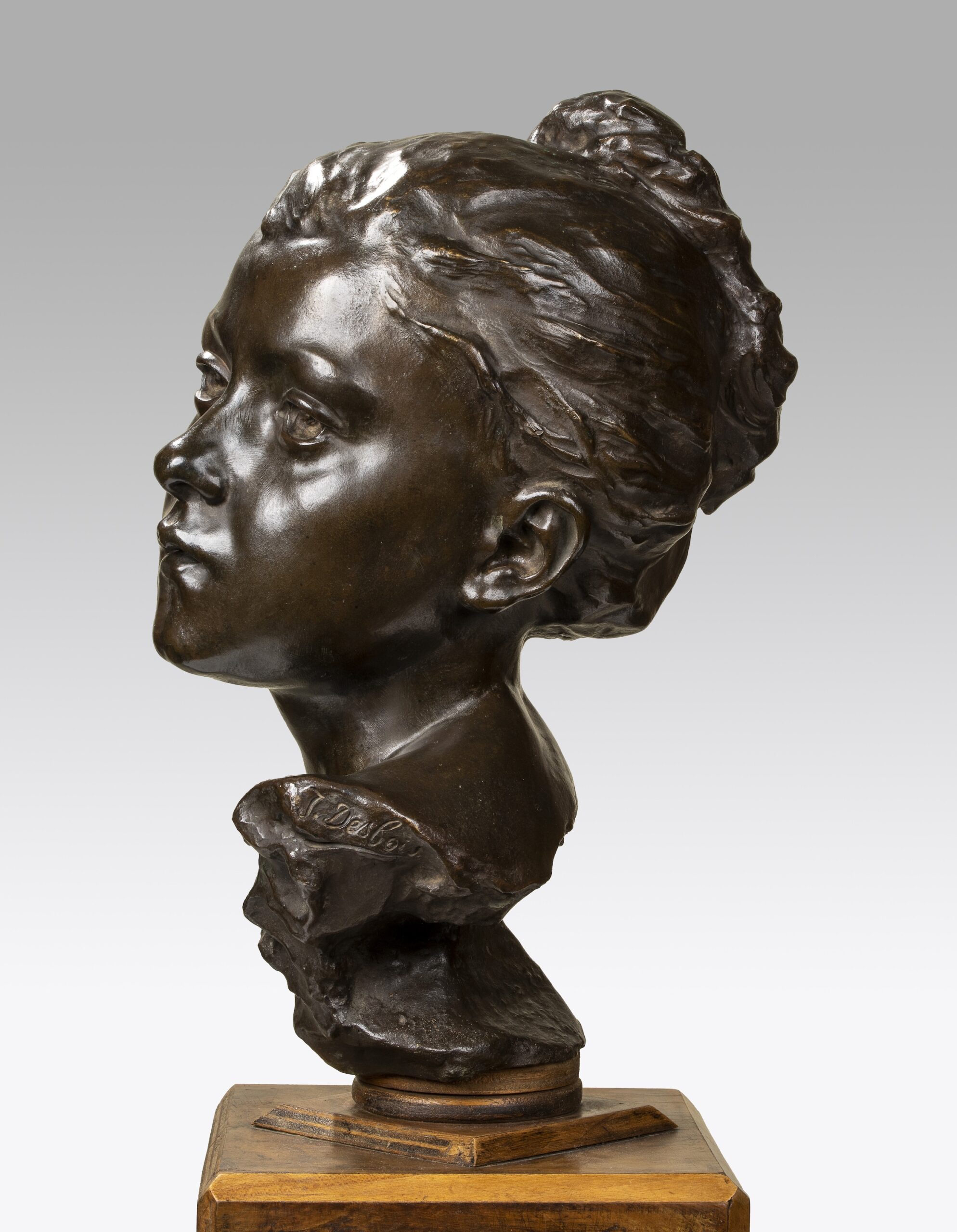 Si le Buste de fillette se présente comme un portrait, genre auquel Jules Desbois s’intéresse assez tardivement, il n’en est pas vraiment un puisque l’identité du personnage n’a jamais été précisée.