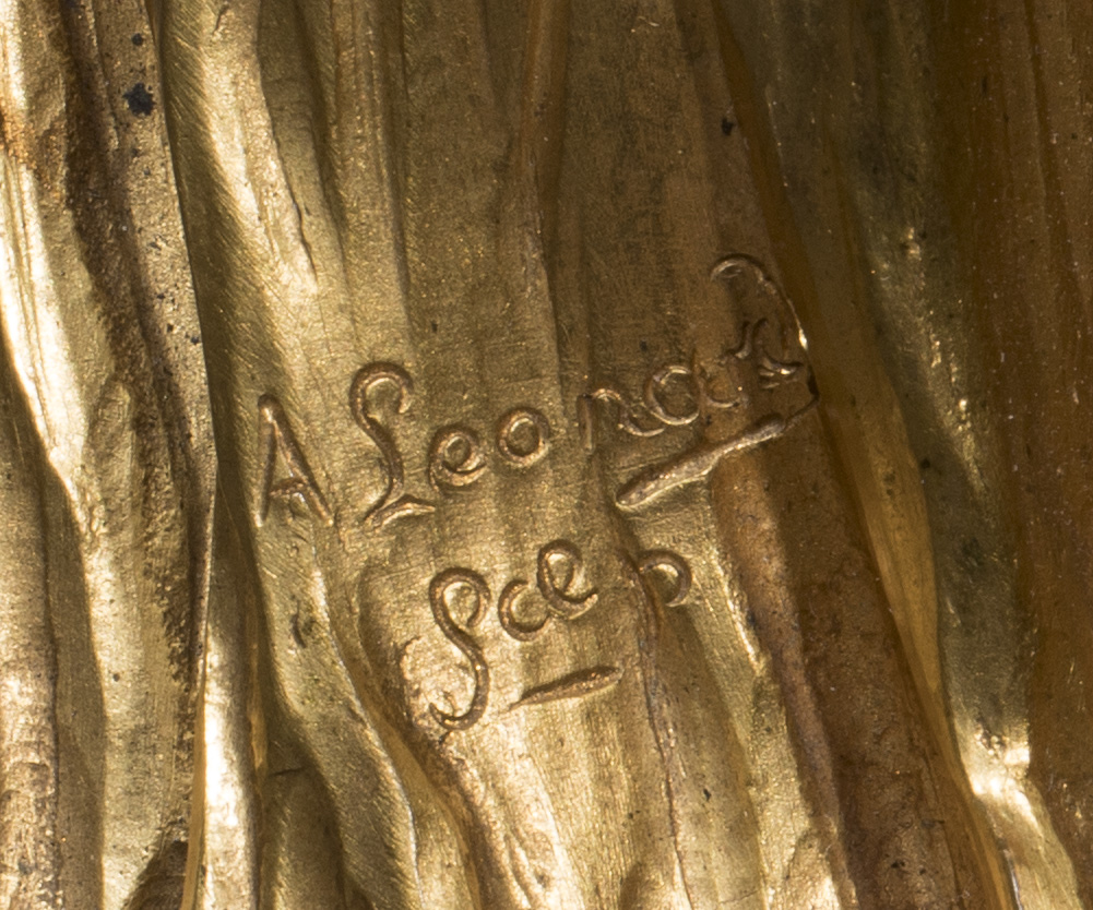 Bronze doré, signé «A Léonard / Sclp » Fonte Susse, porte la marque du fondeur «SUSSE FRERES EDITEURS PARIS» surmonté d’un M
