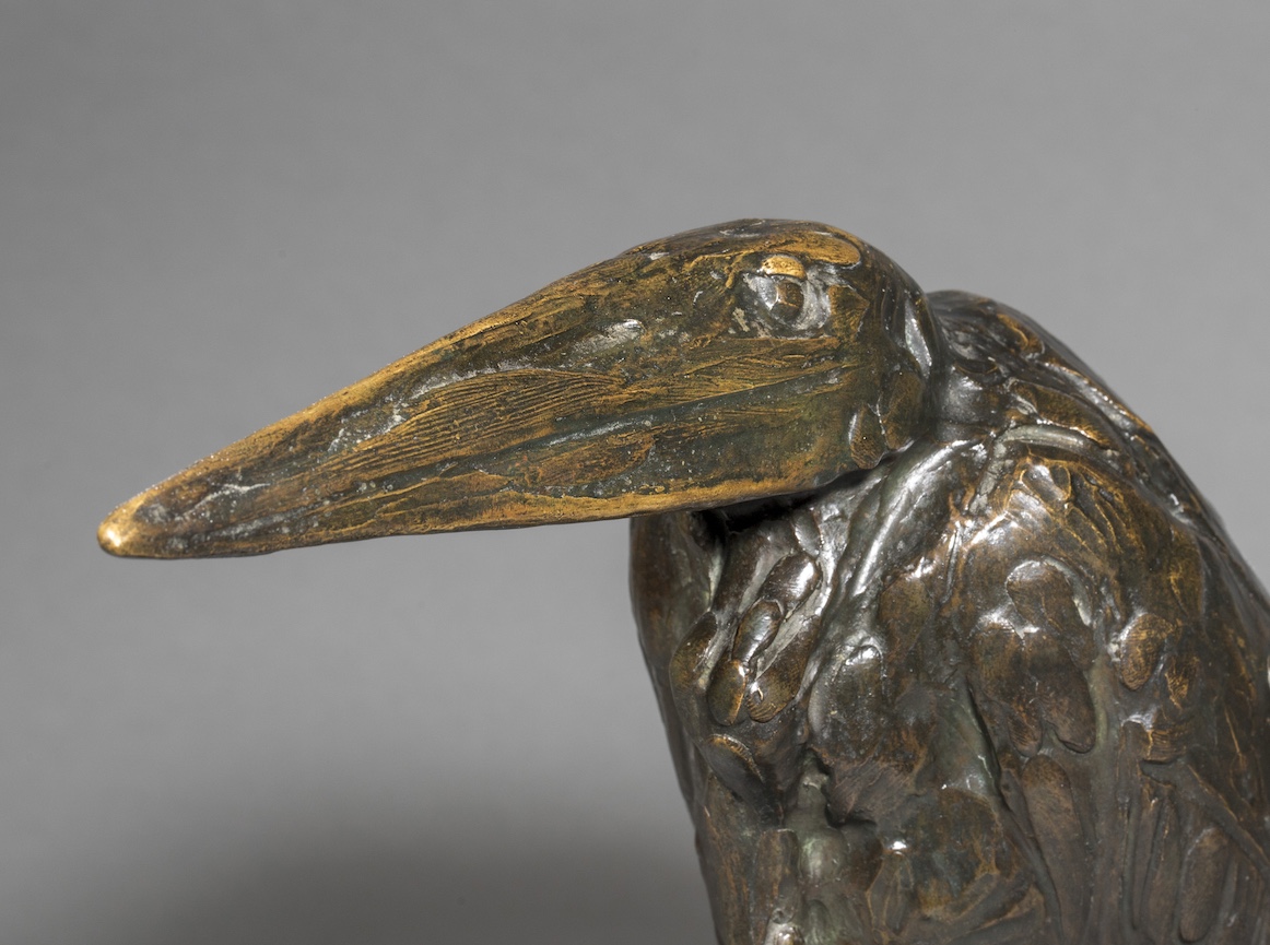 « Je ressemble beaucoup à un vieux marabout » écrit Rembrandt Bugatti dans un petit carnet sans date. Cette phrase, d’une sincérité poignante, éclaire l’attachement profond du sculpteur à cet échassier solitaire, qu’il ne considère pas comme un simple sujet animalier, mais comme un véritable alter ego. Bugatti souffre alors d’un isolement intense, d’un éloignement affectif de sa famille et de ses proches, avec un sentiment d’enfermement comparable à celui des oiseaux migrateurs qu’il observe dans les enclos étroits et inadaptés des jardins zoologiques de Paris et d’Anvers.