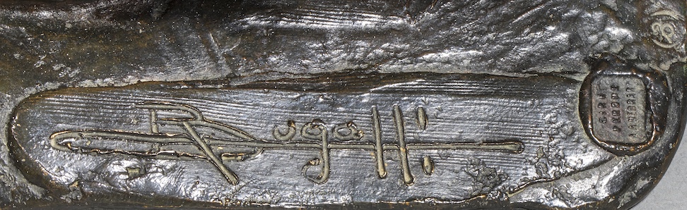 Seuls dix exemplaires ont été recensés de ce modèle édité par Hébrard, l’éditeur exclusif de l’artiste, entre 1913 et 1934. Notre bronze portant le numéro 3 fait donc partie des tout premiers numéros et a été acquis selon les archives familiales directement auprès du fondeur en 1922. C’est en 1903, par l’intermédiaire de son père adoptif René Dubois que Rembrandt Bugatti rencontre Adrien Aurélien Hébrard qui le prend sous contrat. Avec son chef d’atelier Albino Palazzolo, aidé de Marcello et Claude Valsuani, va naître une étroite et amicale collaboration donnant de magnifiques fontes à la cire perdue, ce qui explique la dédicace de notre dessin à son ami fondeur Valsuani, d’origine italienne comme lui.