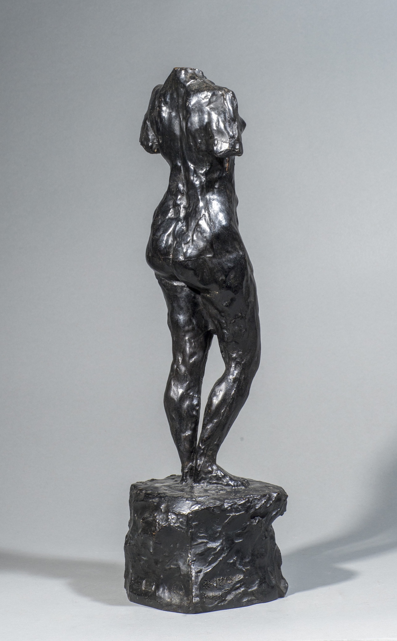 Bronze à patine noir nuancé, signé « Raymond Martin ». Fonte de Valsuani, numérotée 1/10. Porte le cachet du fondeur H. 41 x L. 11 x P. 11 cm. Circa 1940